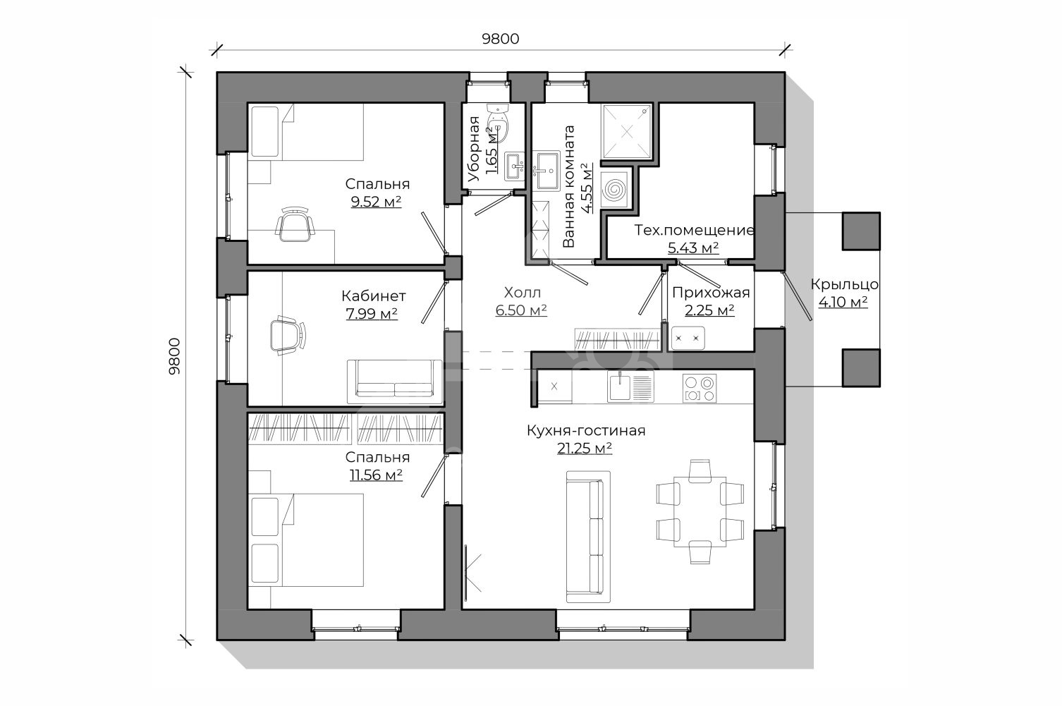 Номер объекта - 1708 Предлагаем к продаже авторский проект одноэтажного дома С-1 100 м². (Стоимость без участка) Отличный вариант для тех, кто планирует комфортное загородное проживание в спокойном и живописном месте. Готовы подробно ответить на все вопросы и предоставить дополнительную информацию. Звоните — будем рады помочь! В "Базовую" комплектацию дома входит полный закрытый теплый контур: • Подготовительные работы - Проект дома; Документы для БТИ; Оценка стройплощадки • Фундамент (зависит от участка) • Несущие стены газоблок / керамоблок / кирпич • Монолитный пояс • Перекрытия - Ширина плит перекрытия: 1-1,5м; Длина до 9 м.; Утепление торцов плит; Заделка швов • Утепленная кровля из металлочерепицы • Окна двухкамерные с тройным стеклопакетом • Металлическая входная дверь с зимним утеплителем Если вас заинтересовал дом — обращайтесь за подробностями. Всегда рады помочь. Помощь в получении кэшбека при покупке недвижимости, ипотеки, реализации материнского капитала и сертификатов. Гарантируем безопасность сделки.