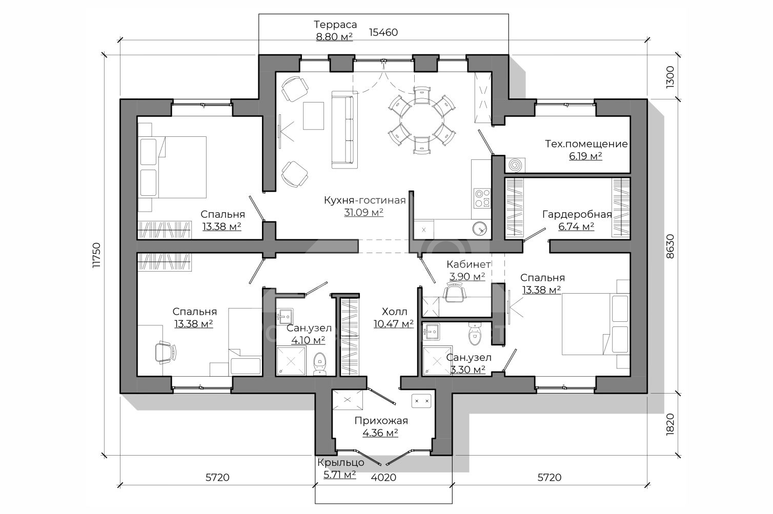 Номер объекта - 1719 Предлагаем к продаже авторский проект одноэтажного дома С-27 160 м². (Стоимость без участка) Отличный вариант для тех, кто планирует комфортное загородное проживание в спокойном и живописном месте. Готовы подробно ответить на все вопросы и предоставить дополнительную информацию. Звоните — будем рады помочь! В "Базовую" комплектацию дома входит полный закрытый теплый контур: • Подготовительные работы - Проект дома; Документы для БТИ; Оценка стройплощадки • Фундамент (зависит от участка) • Несущие стены газоблок / керамоблок / кирпич • Монолитный пояс • Перекрытия - Ширина плит перекрытия: 1-1,5м; Длина до 9 м.; Утепление торцов плит; Заделка швов • Утепленная кровля из металлочерепицы • Окна двухкамерные с тройным стеклопакетом • Металлическая входная дверь с зимним утеплителем Если вас заинтересовал дом — обращайтесь за подробностями. Всегда рады помочь. Помощь в получении кэшбека при покупке недвижимости, ипотеки, реализации материнского капитала и сертификатов. Гарантируем безопасность сделки.