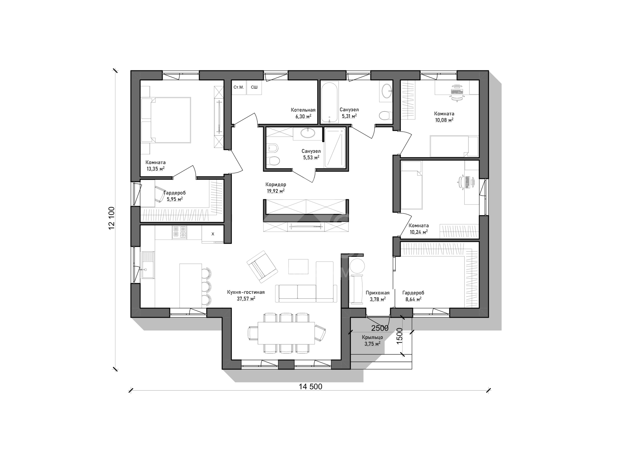 Номер объекта - 1720 Предлагаем к продаже авторский проект одноэтажного дома С-26 157 м². (Стоимость без участка) Отличный вариант для тех, кто планирует комфортное загородное проживание в спокойном и живописном месте. Готовы подробно ответить на все вопросы и предоставить дополнительную информацию. Звоните — будем рады помочь! В "Базовую" комплектацию дома входит полный закрытый теплый контур: • Подготовительные работы - Проект дома; Документы для БТИ; Оценка стройплощадки • Фундамент (зависит от участка) • Несущие стены газоблок / керамоблок / кирпич • Монолитный пояс • Перекрытия - Ширина плит перекрытия: 1-1,5м; Длина до 9 м.; Утепление торцов плит; Заделка швов • Утепленная кровля из металлочерепицы • Окна двухкамерные с тройным стеклопакетом • Металлическая входная дверь с зимним утеплителем Если вас заинтересовал дом — обращайтесь за подробностями. Всегда рады помочь. Помощь в получении кэшбека при покупке недвижимости, ипотеки, реализации материнского капитала и сертификатов. Гарантируем безопасность сделки.