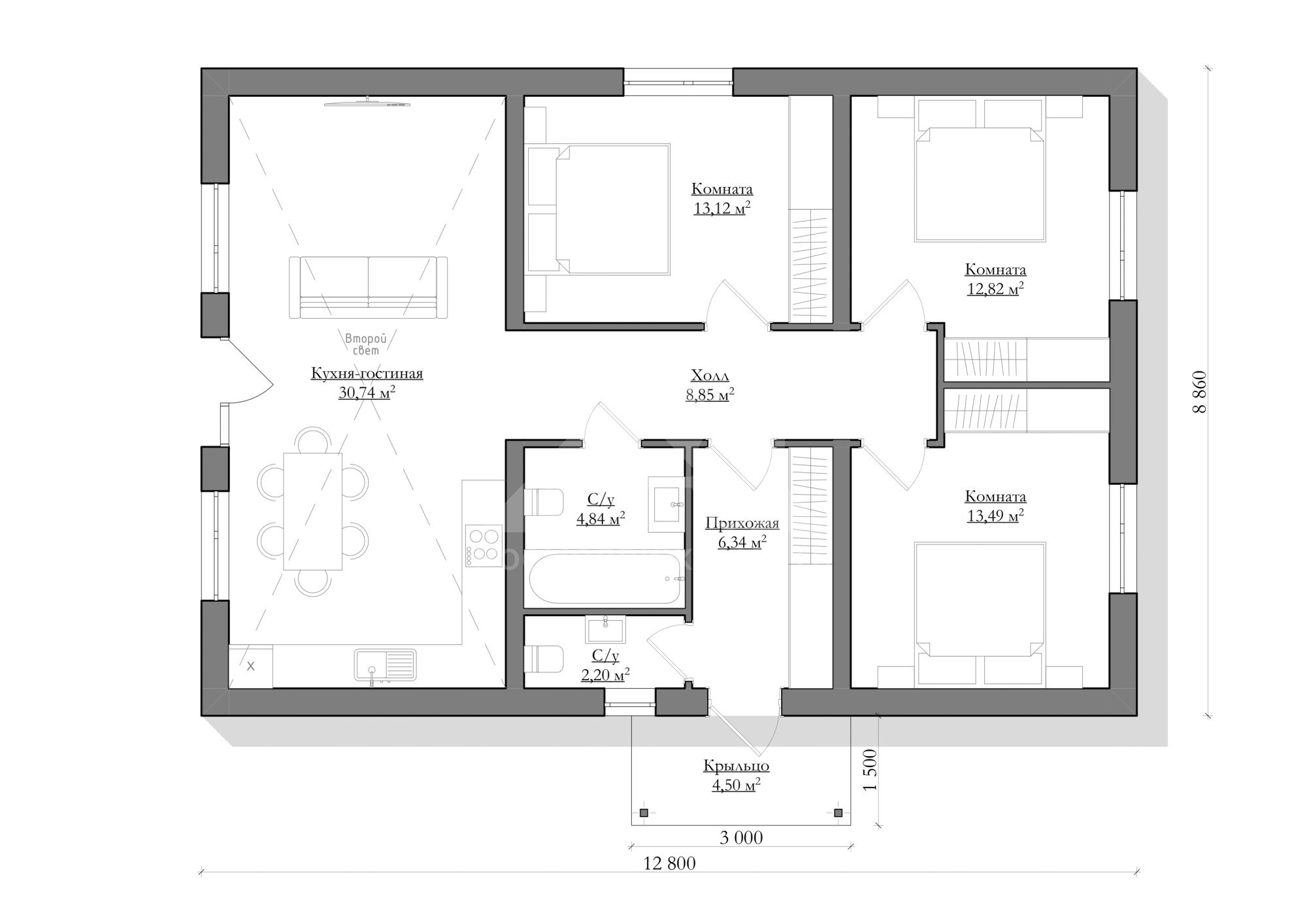 Номер объекта - 1749 Предлагаем к продаже авторский проект одноэтажного дома С-12 117 м². (Стоимость без участка) Отличный вариант для тех, кто планирует комфортное загородное проживание в спокойном и живописном месте. Готовы подробно ответить на все вопросы и предоставить дополнительную информацию. Звоните — будем рады помочь! В "Базовую" комплектацию дома входит полный закрытый теплый контур: • Подготовительные работы - Проект дома; Документы для БТИ; Оценка стройплощадки • Фундамент (зависит от участка) • Несущие стены газоблок / керамоблок / кирпич • Монолитный пояс • Перекрытия - Ширина плит перекрытия: 1-1,5м; Длина до 9 м.; Утепление торцов плит; Заделка швов • Утепленная кровля из металлочерепицы • Окна двухкамерные с тройным стеклопакетом • Металлическая входная дверь с зимним утеплителем Если вас заинтересовал дом — обращайтесь за подробностями. Всегда рады помочь. Помощь в получении кэшбека при покупке недвижимости, ипотеки, реализации материнского капитала и сертификатов. Гарантируем безопасность сделки.