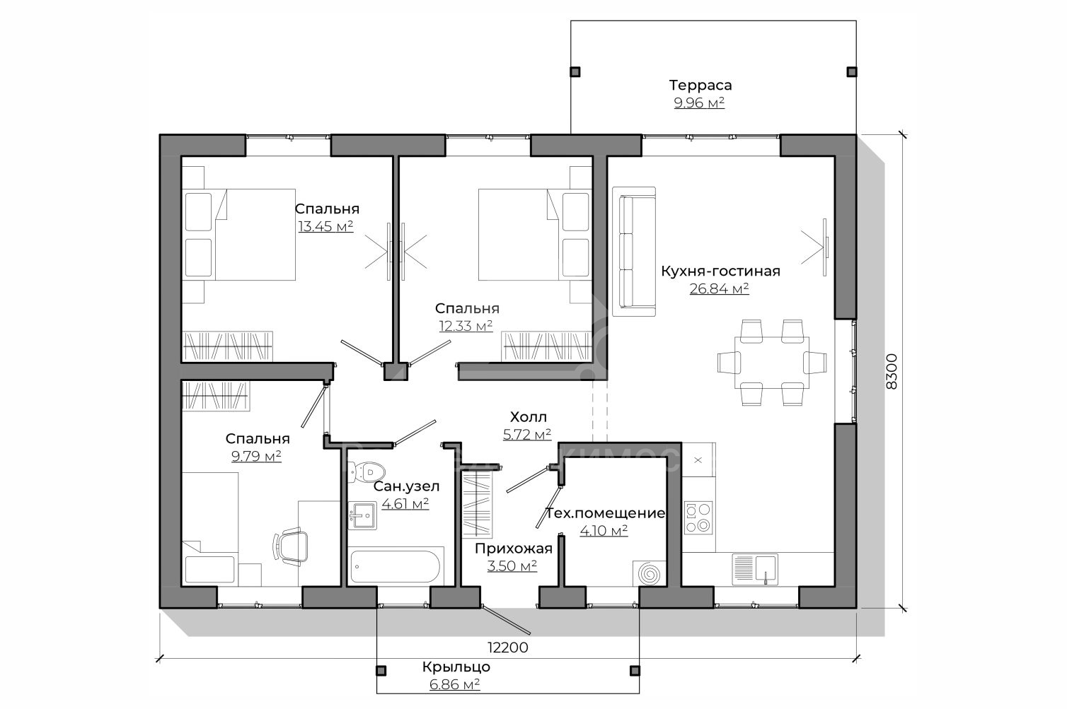 Номер объекта - 1756 Предлагаем к продаже авторский проект одноэтажного дома С-11 111 м². (Стоимость без участка) Отличный вариант для тех, кто планирует комфортное загородное проживание в спокойном и живописном месте. Готовы подробно ответить на все вопросы и предоставить дополнительную информацию. Звоните — будем рады помочь! В "Базовую" комплектацию дома входит полный закрытый теплый контур: • Подготовительные работы - Проект дома; Документы для БТИ; Оценка стройплощадки • Фундамент (зависит от участка) • Несущие стены газоблок / керамоблок / кирпич • Монолитный пояс • Перекрытия - Ширина плит перекрытия: 1-1,5м; Длина до 9 м.; Утепление торцов плит; Заделка швов • Утепленная кровля из металлочерепицы • Окна двухкамерные с тройным стеклопакетом • Металлическая входная дверь с зимним утеплителем Если вас заинтересовал дом — обращайтесь за подробностями. Всегда рады помочь. Помощь в получении кэшбека при покупке недвижимости, ипотеки, реализации материнского капитала и сертификатов. Гарантируем безопасность сделки.